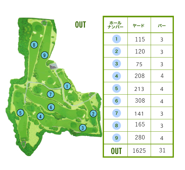 特徴のあるグリーンの攻略がカギになるアウトコース(OUT)です。